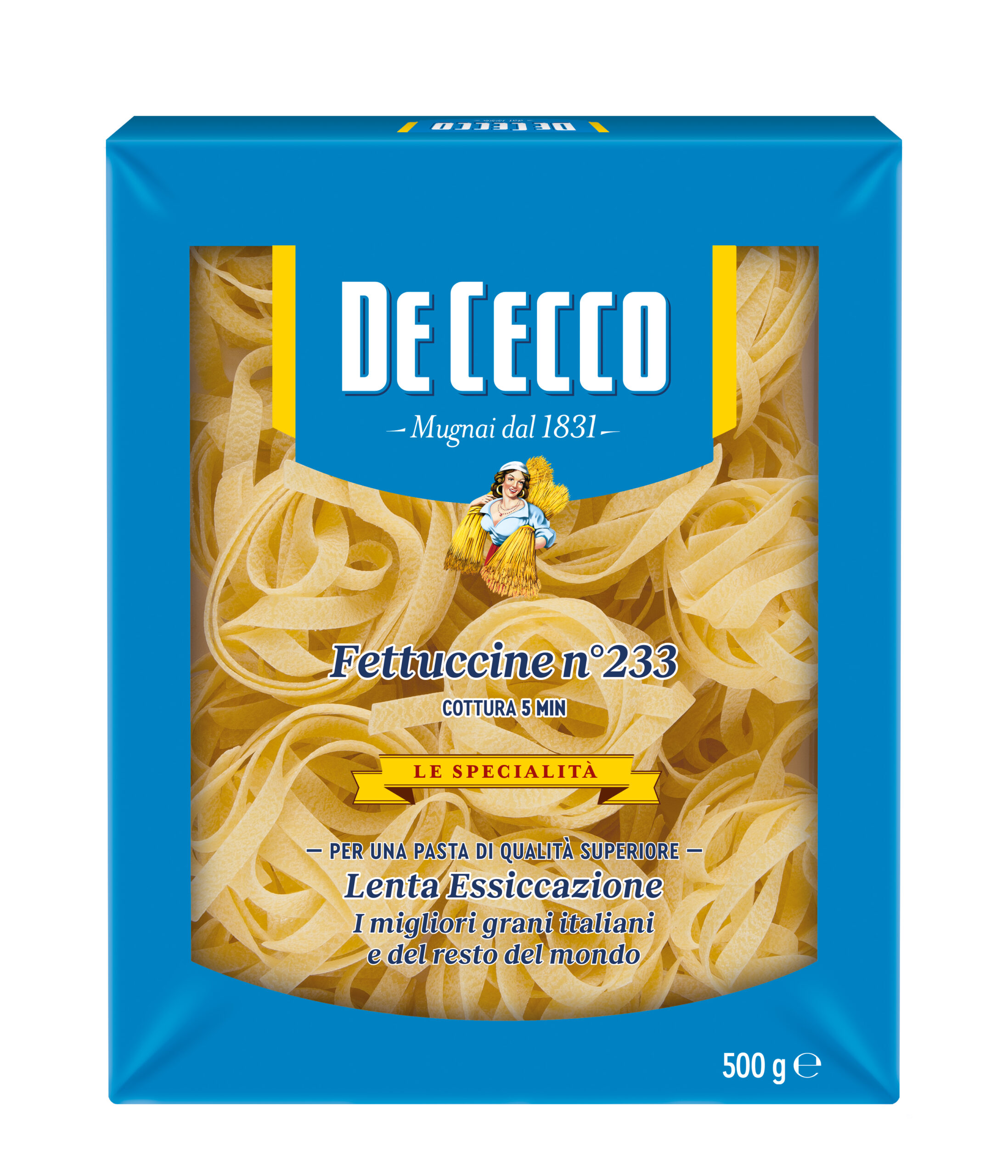 | Zloženie | pšeničná krupica, voda. Na výrobu DE CECCO cestovín sa používajú vybrané odrody tvrdej pšenice a pramenitá voda. |